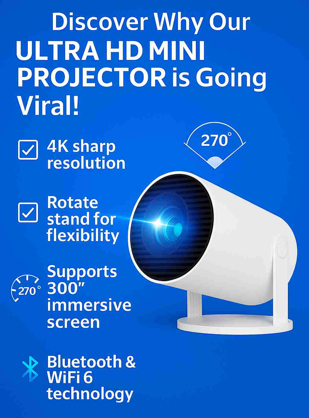 Transform any space into a personal cinema with the 4Home™ Portable Smart Projector 4K. Perfect for movie nights, gaming, or presentations, this compact projector brings vibrant, high-quality visuals wherever you go.
