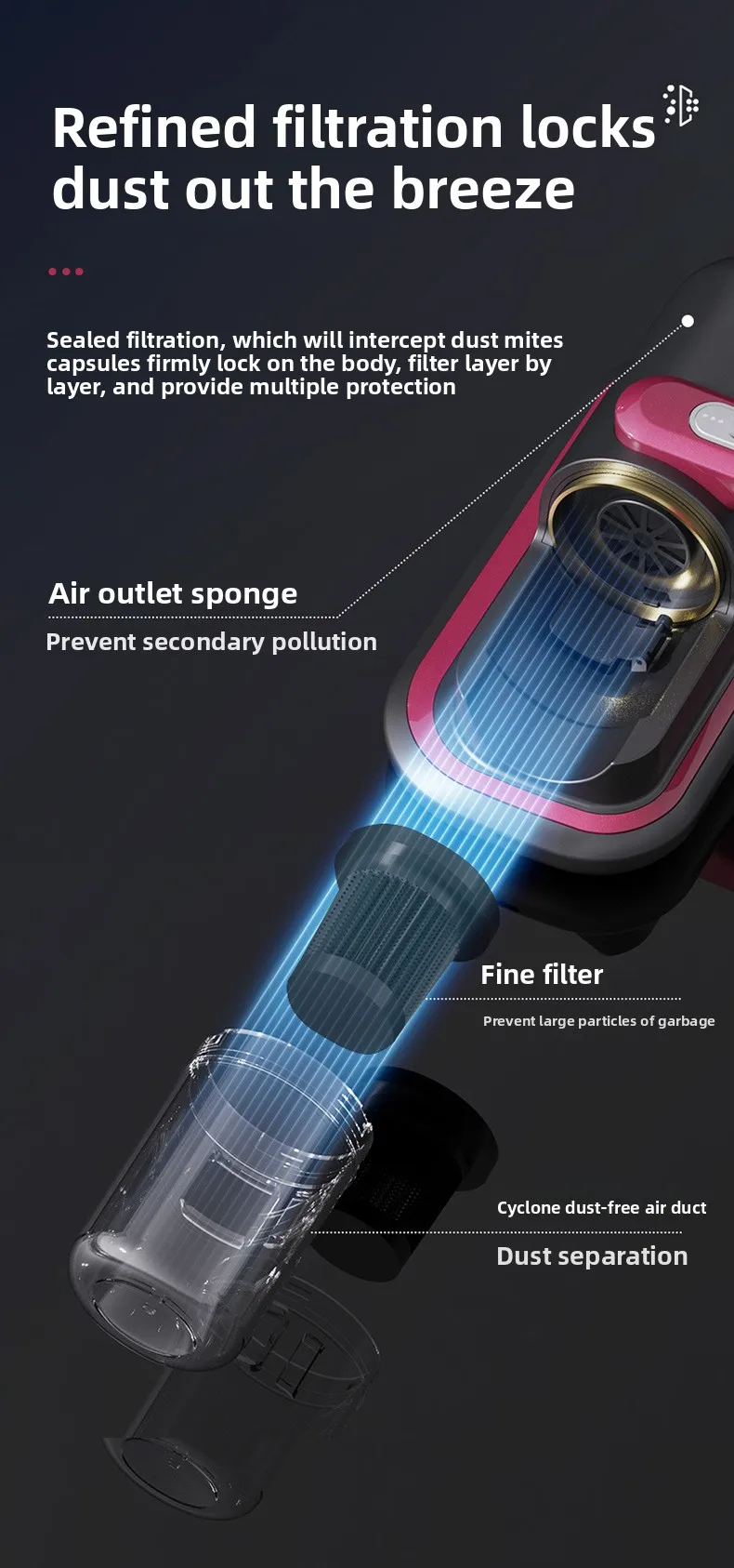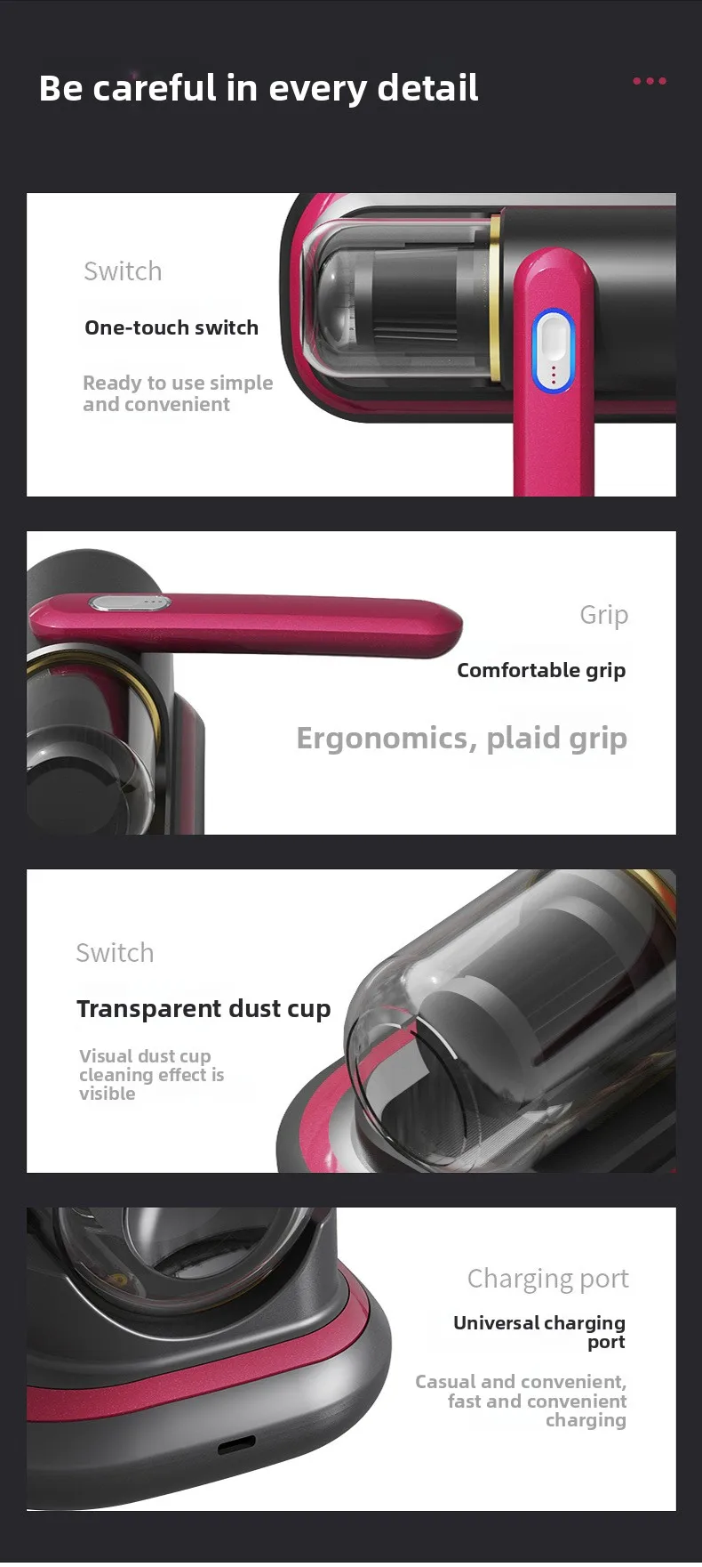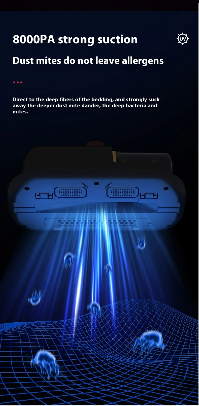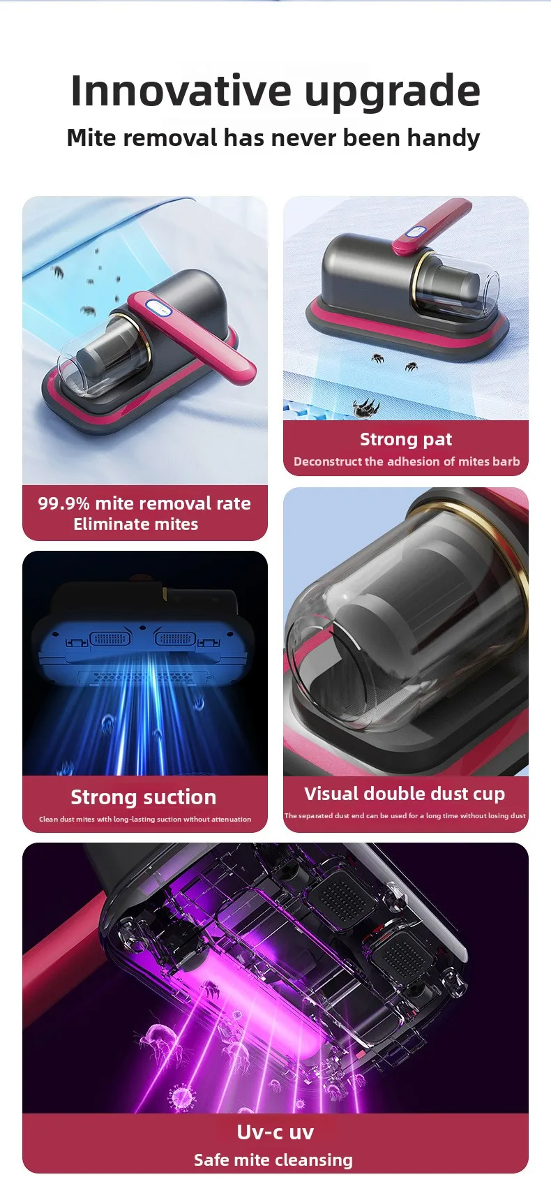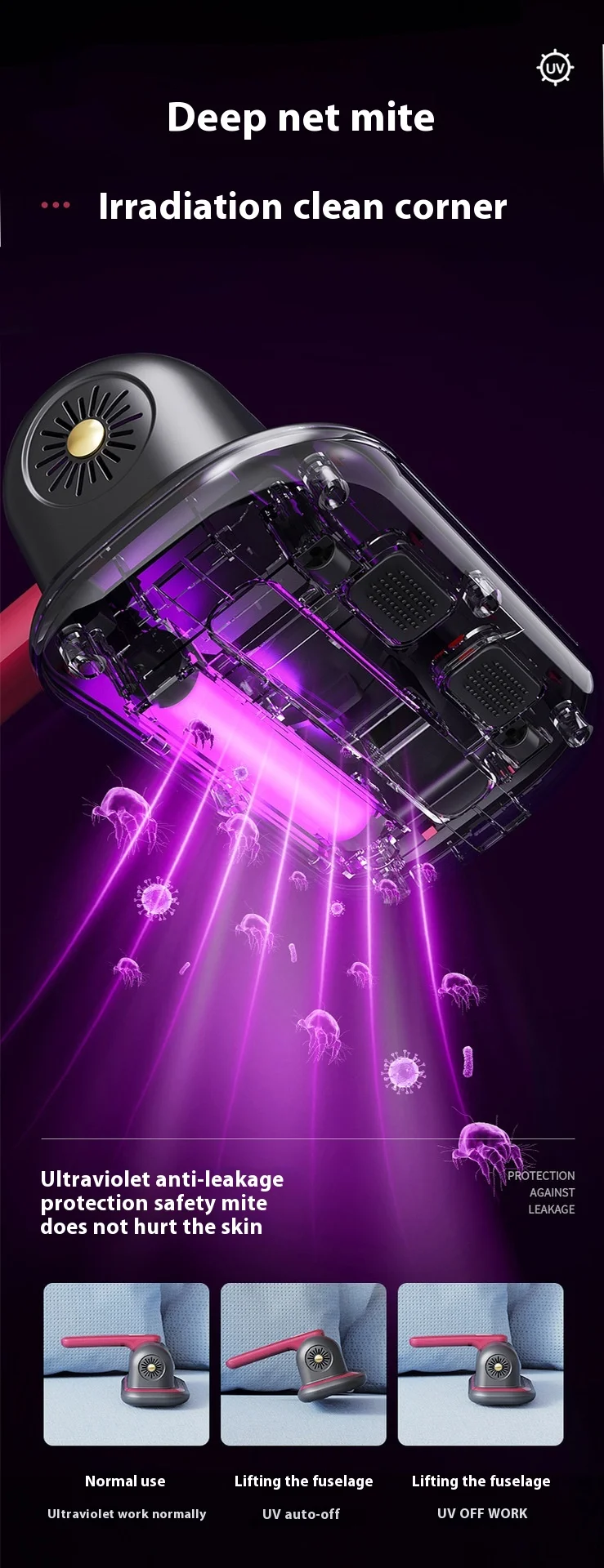 🔋 UV Wireless Handheld Vacuum | Portable Bed & Mattress Mite Remover with Purple Light & Large Suction | US Plug