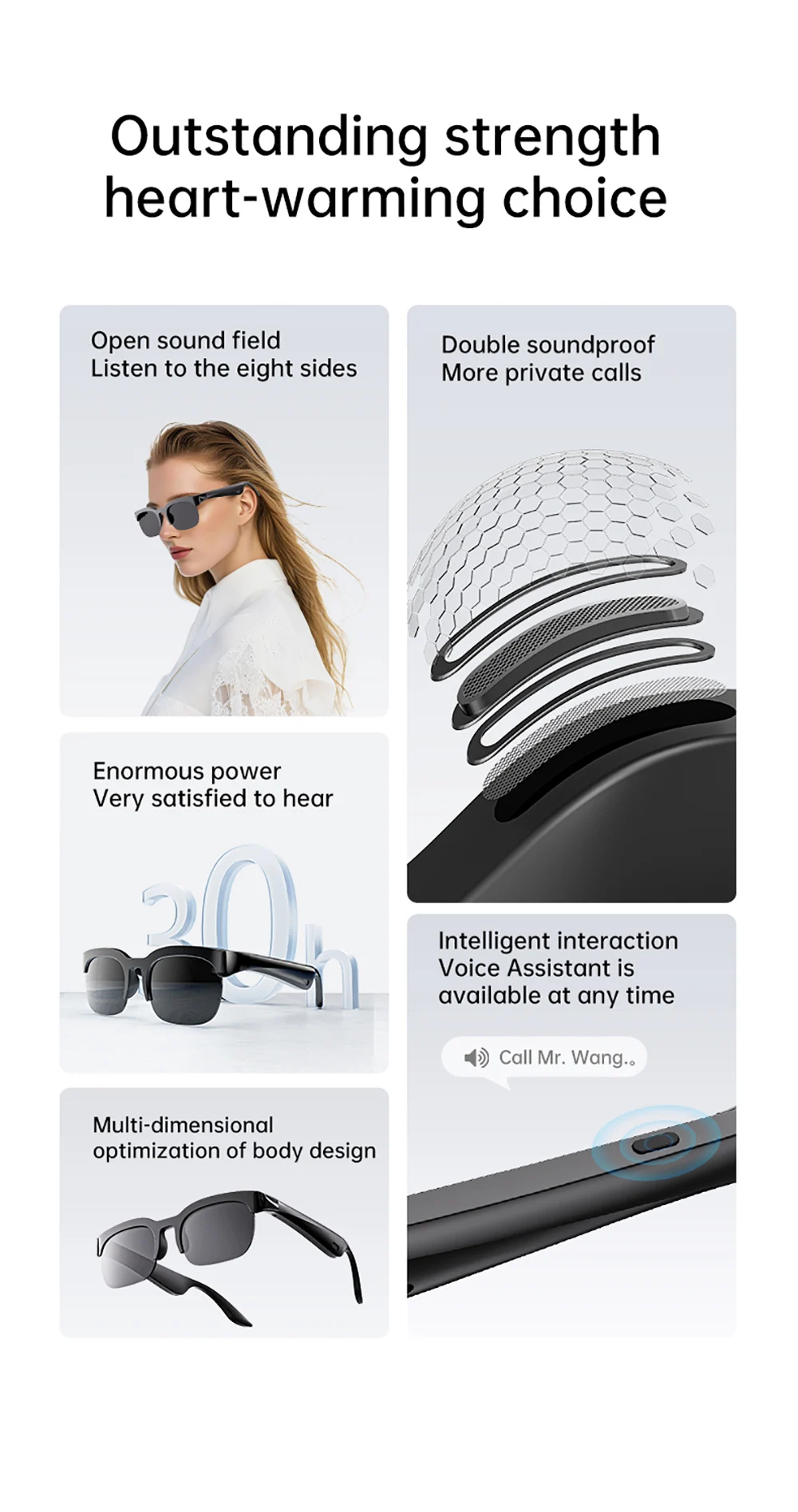 Smart Glasses Wireless Bluetooth 6.0 Stereo Headphones Call Music Outdoor Cycling Sunglasses Voice Control HIFI Anti-UV Glasses
